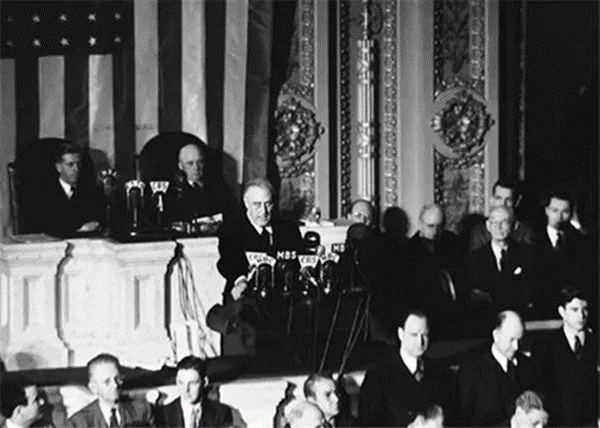 次日,罗斯福总统在美国国会发表了著名的“国耻”演讲。他说,“昨天,1941年12月7日——它将永远成为国耻日——美利坚合众国遭到了日本帝国海空军预谋的突然袭击。”“我要求国会宣布,自1941年12月7日星期日日本对我国无端进行卑鄙的进攻,美国同日本帝国之间已处于战争状态。”国会以仅有1票反对的结果通过了对日宣战的决议,罗斯福签署了对日宣战声明,英、荷也对日本宣战。9日,中国政府正式对日本宣战,同时对德、意宣战。1937年“七七事变”以来,中日已完全处于战争状态,但国民政府仅限于发表《自卫抗战声明书》,而在太平洋战争爆发后才正式对日宣战。其宣战布告称:“兹特正式对日宣战,昭告中外,所有一切条约、协定、合同,有涉及中、日之间关系者,一律废止。”