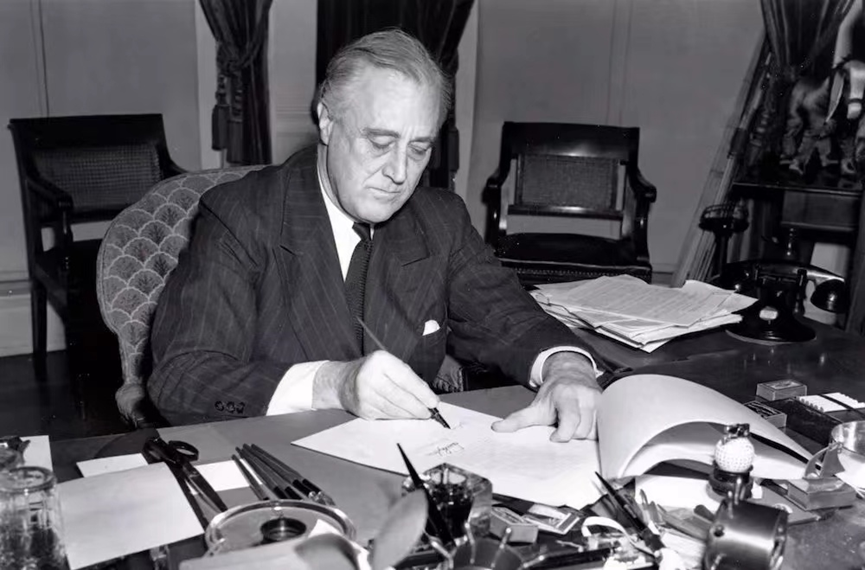 (罗斯福总统签署《租借法案》,1941年3月11日)