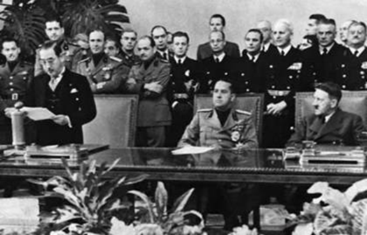 1939年9月1日,德军向波兰发动了闪击战,随后英、法对德宣战,第二次世界大战爆发。1940年9月27日,《德意日三国同盟条约》在柏林签订,法西斯轴心形成。该条约称:日本承认并尊重德国与意大利建立欧洲“新秩序”事业中之领导权,德国与意大利则承认并尊重日本建立东亚“新秩序”事业中之领导权;缔约国之一方如遭受未参与欧战或中日“冲突”之大国攻击时,三国保证以政治、经济、军事之一切手段互相支援。日本与德意两国结盟,其中就包含着威慑美国的意图。