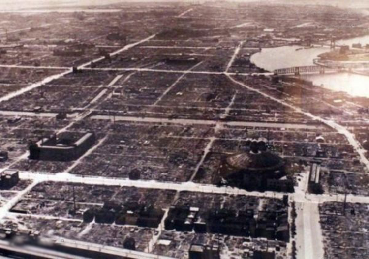 (美军的B—29战略轰炸几乎把日本东京夷为平地)