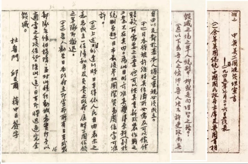 (收藏于中国第二历史档案馆的《波茨坦公告》中文抄本)