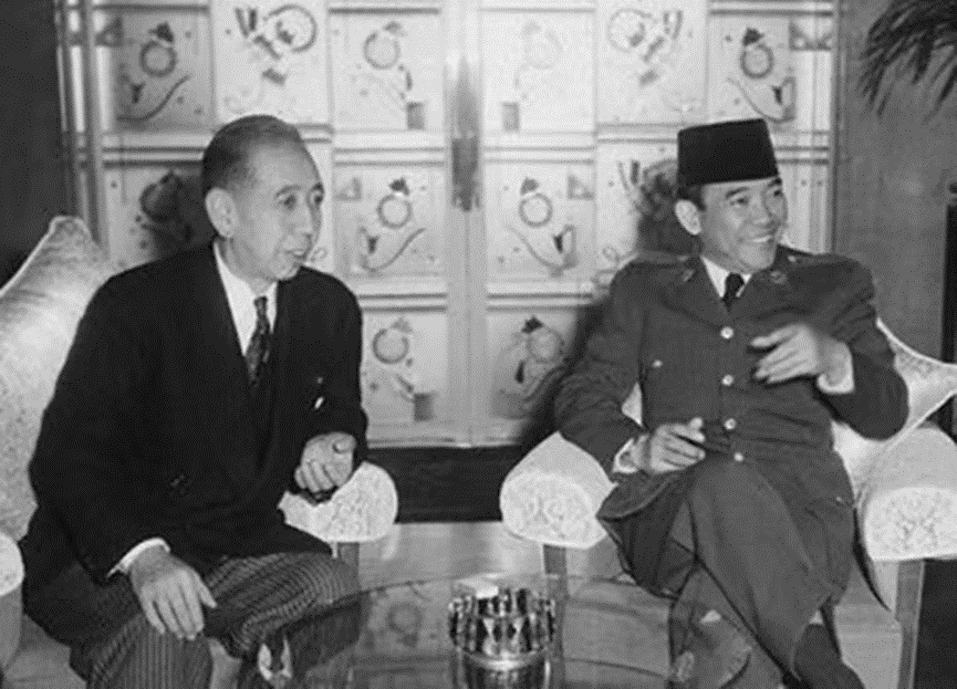 (日本首相岸信介[左]与印尼总统苏加诺)