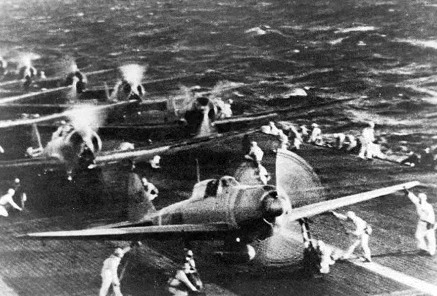 (日军舰载机准备从航母甲板起飞袭击珍珠港/1941年12月7日)