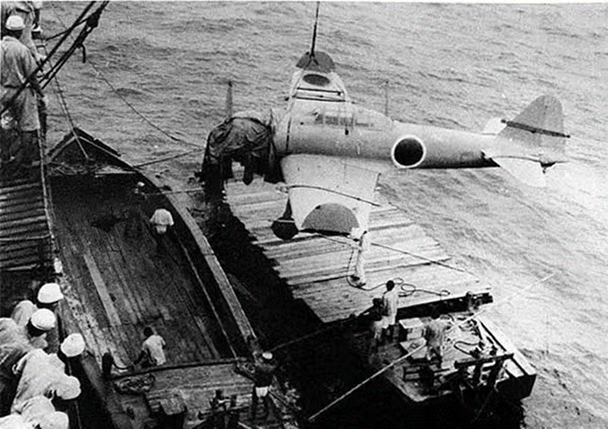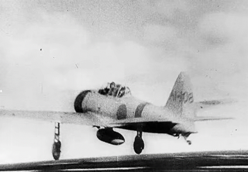 在1942年6月上旬的中途岛战役中,载满燃油的零式战斗机在即将起飞前被击毁于航母飞行甲板上。这是零式战斗机从逞强走向落败的一个转折点。