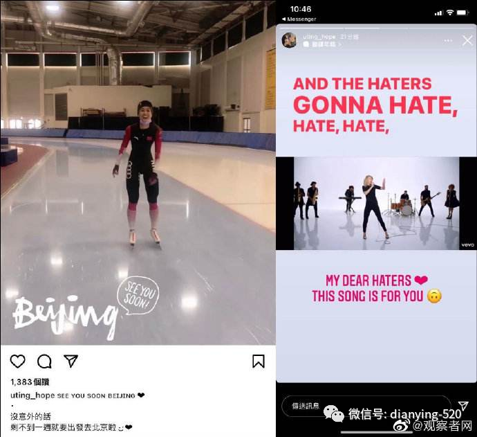 再说一个比较近的事,冬奥会前中国台北冬奥代表队的运动员黄郁婷在美国训练。正巧我们大陆的运动员也在那边训练,双方有一些交流,然后大陆的运动员赠送了一件咱们的队服给黄郁婷。黄郁婷就把这事分享到了网络上。