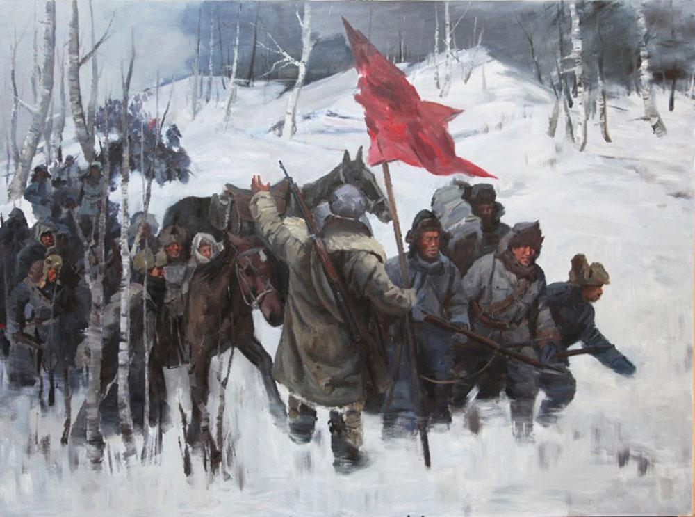 严寒和饥饿每时每刻都在考验战士们的生命力和毅力,一路上经常可以看见掉队的人,他们实在走不动了,一头扎在雪地里,就再也没有起来。