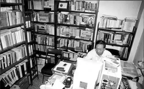 在中国社会科学院近代史研究所,杨天石的研究室是一道“迷宫景观”——不足20平方米的屋子,竖立着十几个书架,上面堆放的书籍大约有六七千册,除了门口到办公桌的狭窄过道,来访者站在任何一个位置,都看不见房间主人的身影。