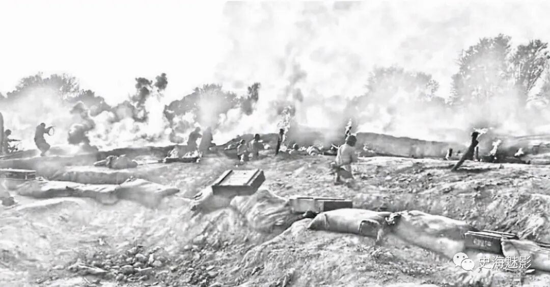 中国守军的阵地上顿时一片火海,各种防御工事也遭到轰炸,中国守军只能在坑道里躲避日军的炮火。