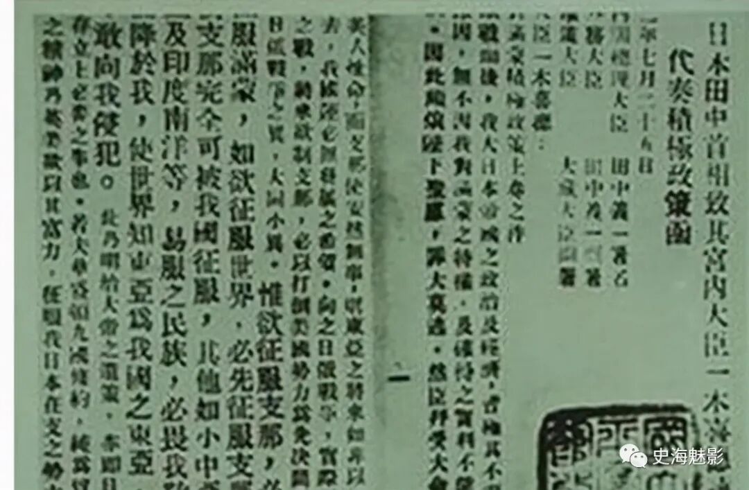1927年,田中义一成为新一任日本首相,此人便是《田中奏折》的始作俑者,一个坚定的军国主义者。