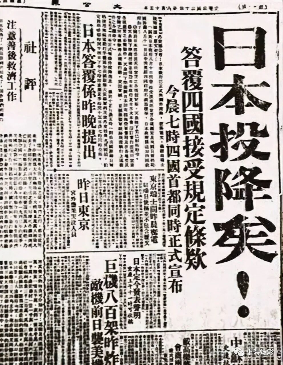 1945年8月15日,在中国与世界反法西斯组织或国家的努力下日本宣布投降,随后举行了受降仪式。