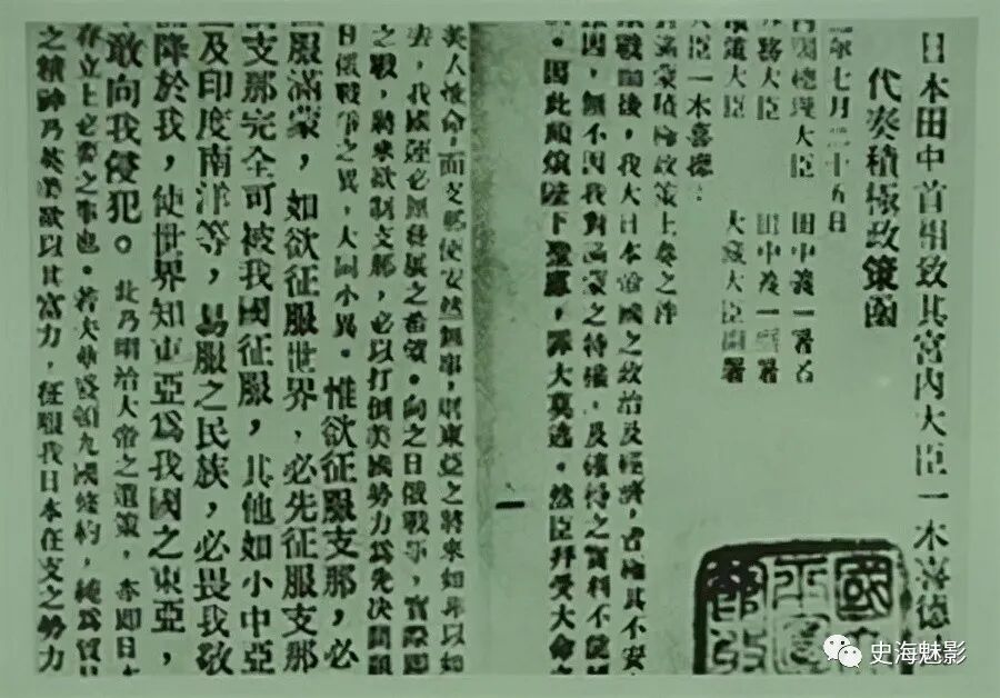 田中义一的奏折不免让野心勃勃的昭和天皇心潮澎湃,必定这可是为“大日本帝国开疆扩土”的良计。