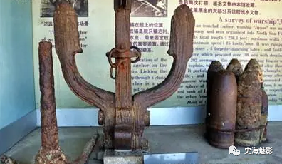 在日本东京的上野公园中陈列着一批军舰的舰锚、炮弹、锚链等文物,这些物品是从北洋水师镇远和靖远舰上拆卸下来的。