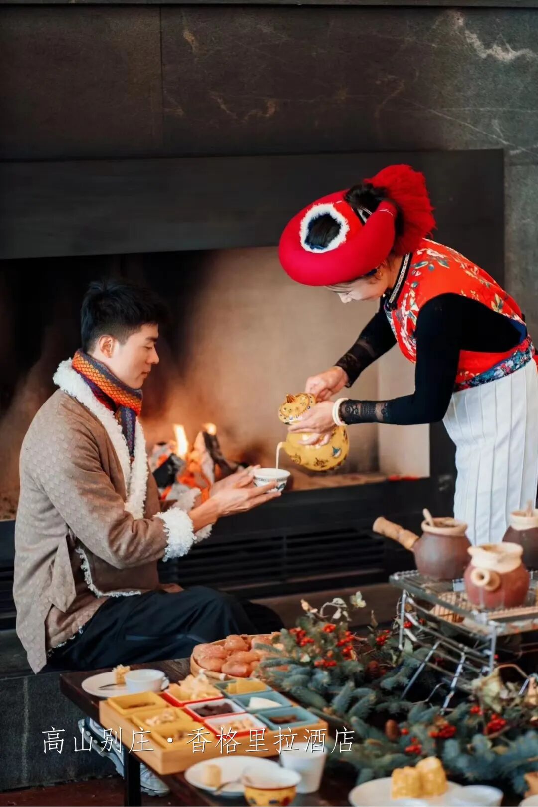 乘坐早班机抵达丽江,由博物安排专车接送至香格里拉·高山别庄,入住高级别墅房。午餐享用过桥米线,午休过后,进行酒店Tour,参观酒店艺术展和高山美术馆。之后出发前往原汁原味的藏民家中,发现藏式建筑的美感、感受藏家文化、享用藏地美食,围着火塘亲自动手打酥油茶和捏糌粑。