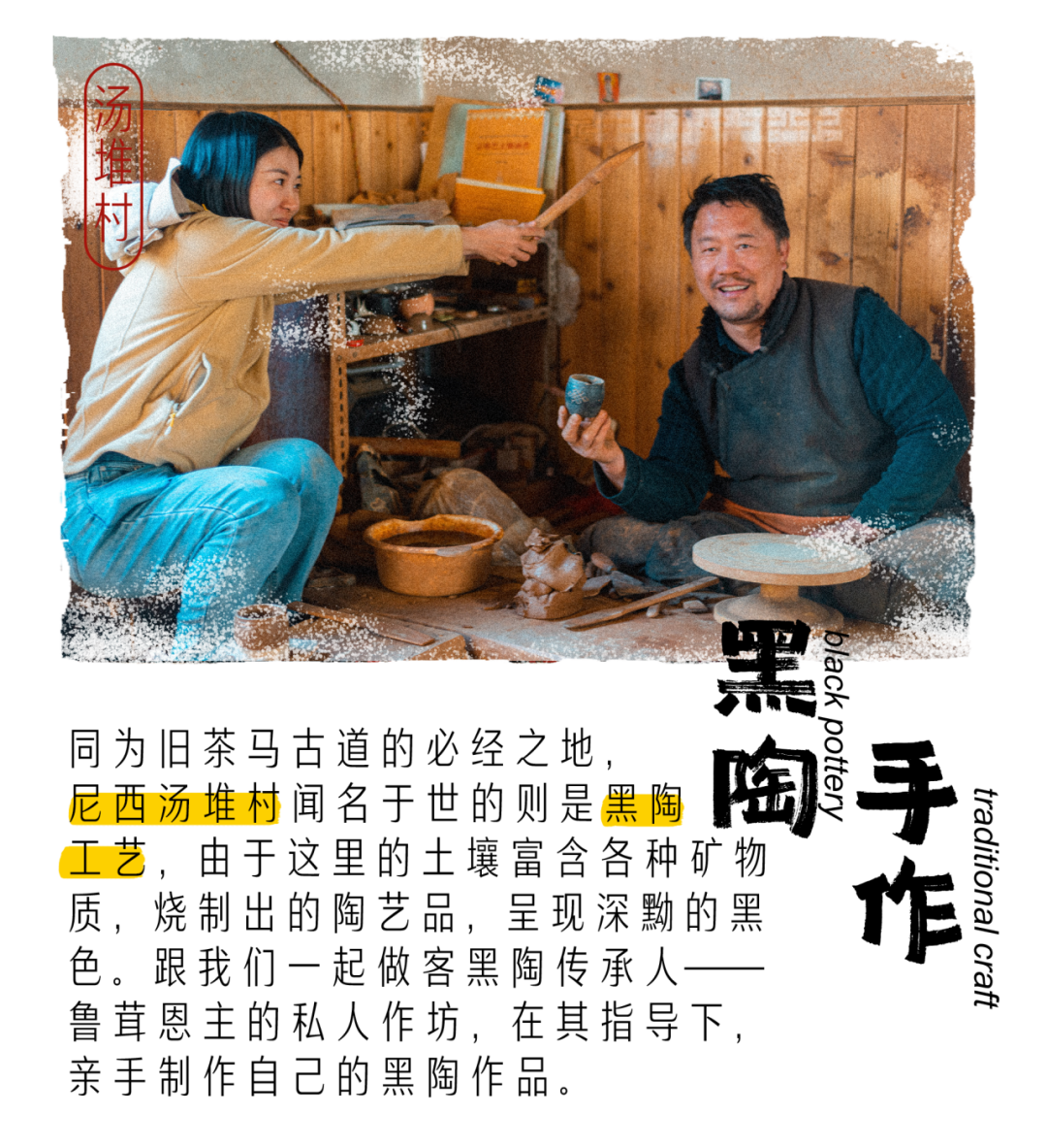 出发前往德钦·梅里雪山·高山别庄,途中前往尼西汤堆村与大师鲁茸恩主体验制作尼西黑陶,感受非物质文化遗产的魅力,再品尝尼西黑陶锅熬制的鸡汤。下午途经月亮湾,欣赏金沙江第一湾的壮美景观。晚间抵达梅里雪山,入住酒店并品尝特色牦牛肉小火锅。