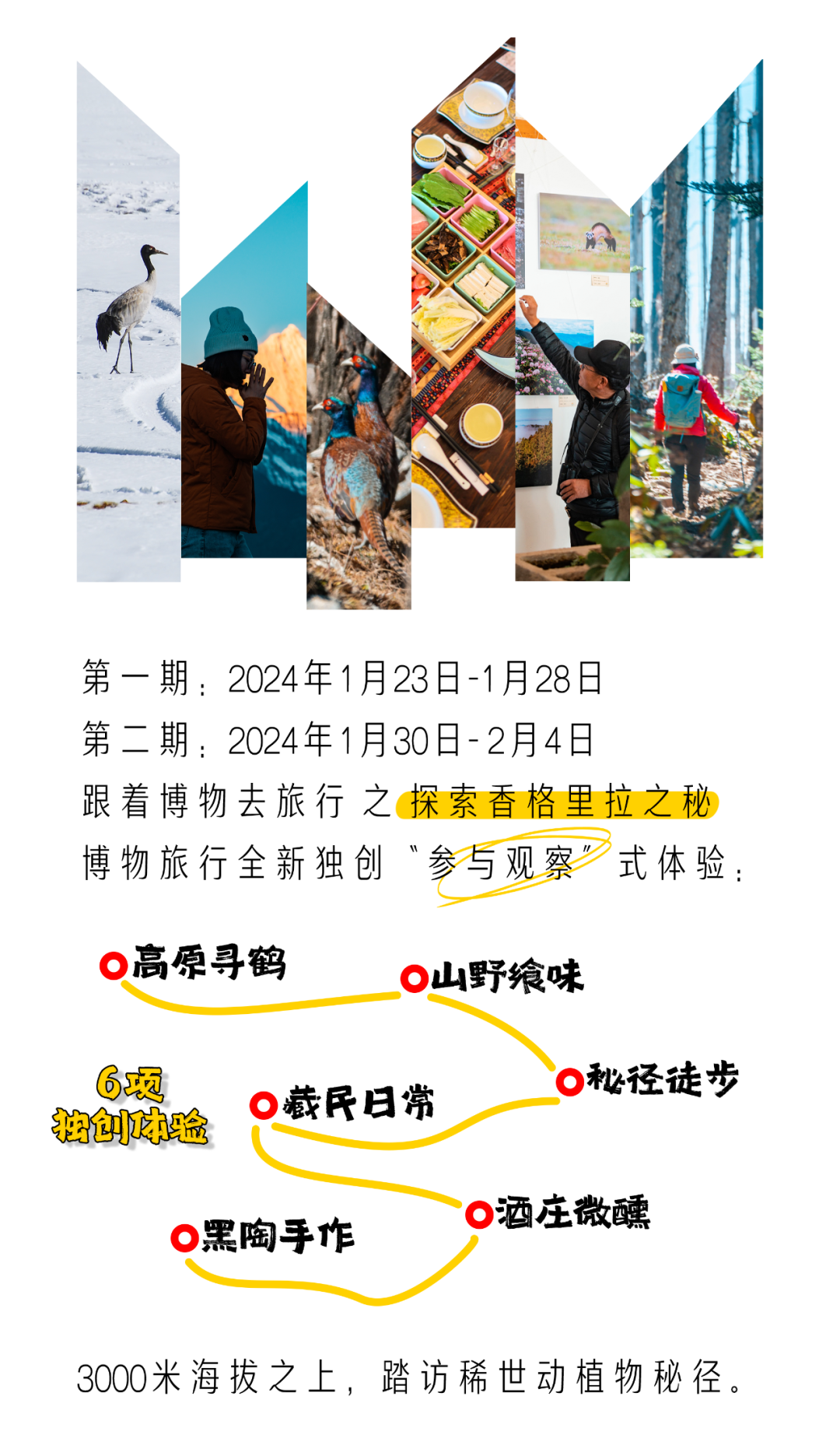 中。六天行程相对轻松,只有一天是全日高山徒步,虽然路况平缓,但徒步线路全长约有十公里,运动强度较高。出行前,博物旅行会预先给所有小伙伴,提供自制的高原运动指南,如患长期性或慢性疾病,请于报名前告知,我们会根据具体情况给出合理的出行建议。