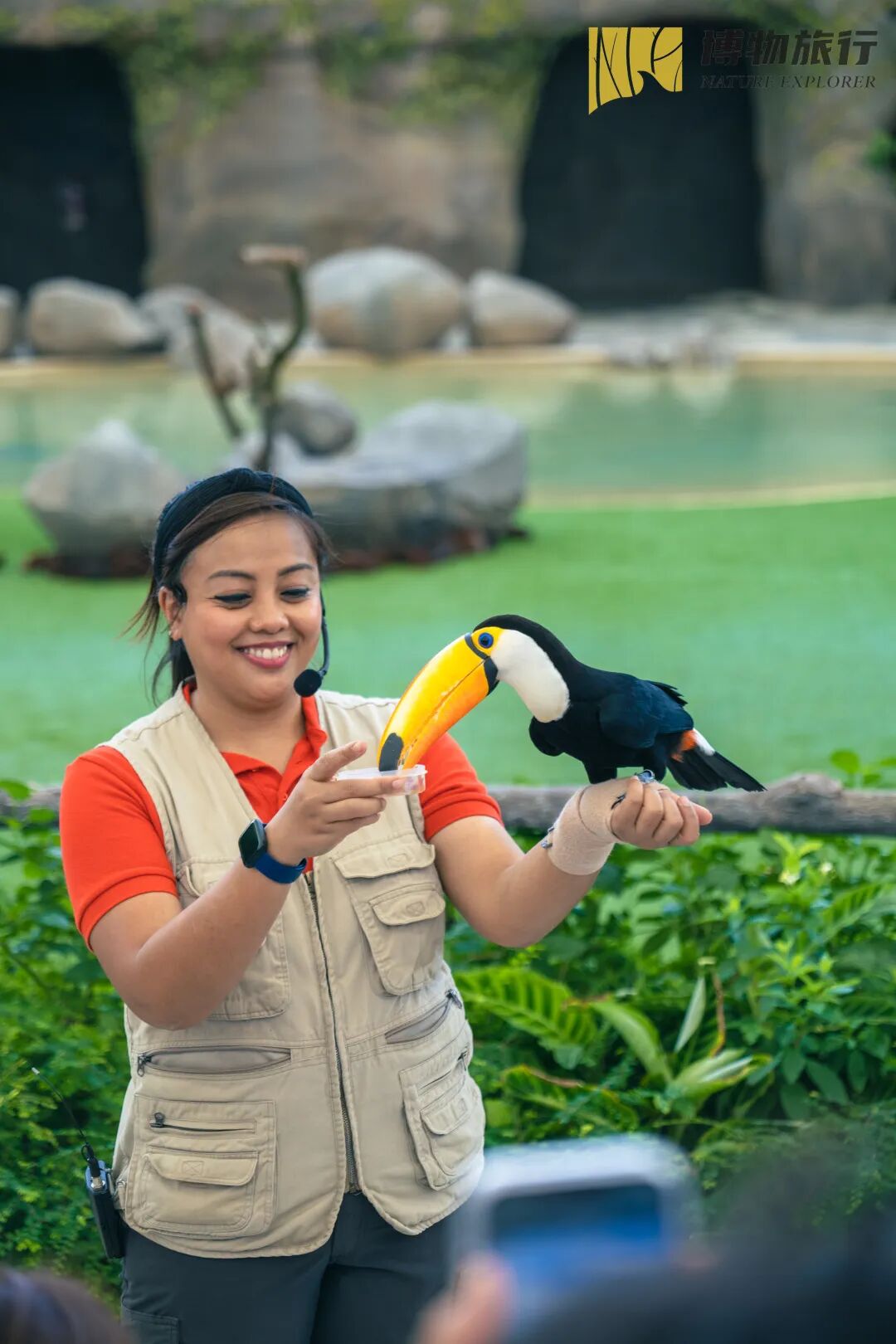在天际剧场我们将看到鸟儿们更丰富的行为特性,例如把食物喂到“老婆”嘴边的冠斑犀鸟~从我们头顶低空掠过的各种大型猛禽,还将了解到濒危鸟类的保育现状和相关知识。