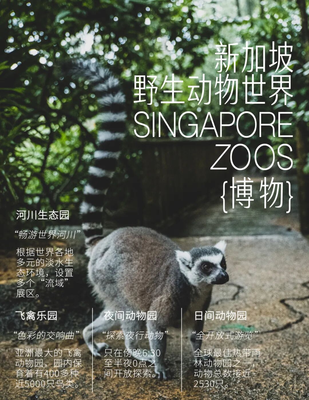 用过早餐后,我们前往新加坡动物园(日间动物园),这里自1973年开放后就成为全球最佳热带雨林动物园之一,保育着315种哺乳动物类、鸟类和爬虫类动物,总数接近2530只,走在其中仿佛置身原始森林。