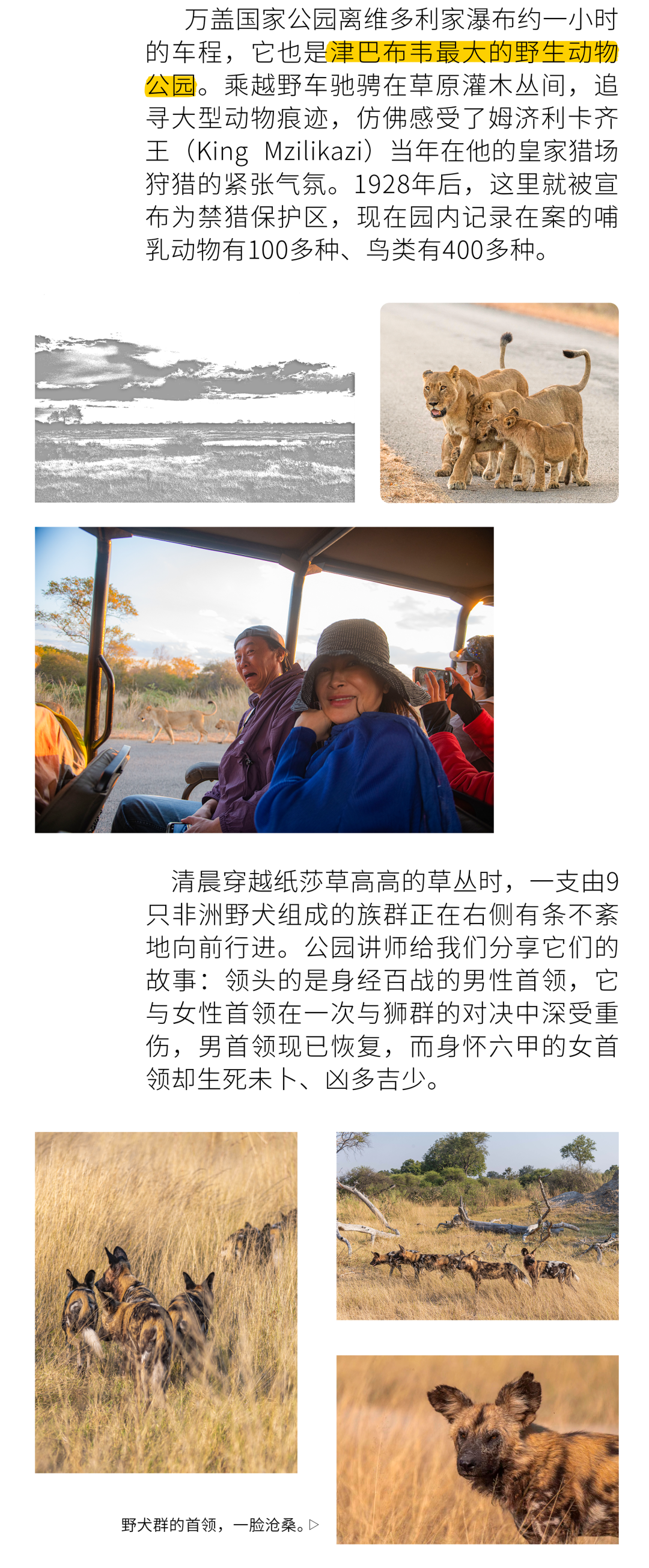 欢迎来到津巴布韦瀑布城。落地签证办理结束后,我们就要前往万盖国家公园了。万盖国家公园位于津巴布韦西南部,是这个国度内最大的国家公园,它的占地面积等同于英国的威尔士。这里生活着90多种动物,400多种鸟类和大约1000余种树木和灌木。