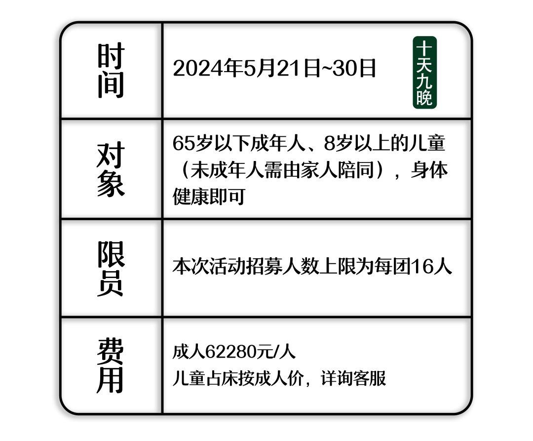 7.合同及保险:活动前需签署旅行合同;活动期间为您购买国际旅游保险费