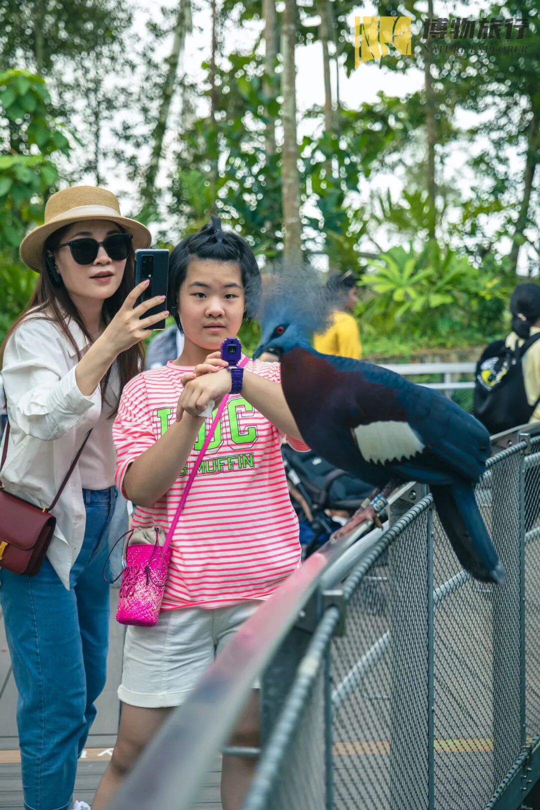 04游客妹妹与充满艺术张力的凤冠鸠
