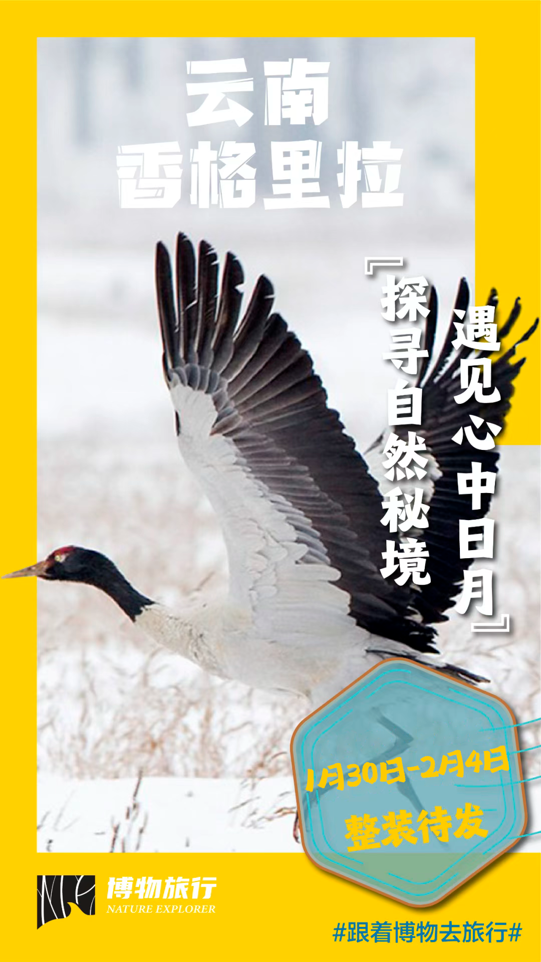 清晨,穿过炊烟袅袅的纳帕海地区探访黑颈鹤夜栖地,见证上百只黑颈鹤起飞出发去觅食。之后前往松赞林寺,拍摄其在氤氲中的绝美景观。午饭后,换上传统藏族服饰游览独克宗古城,留下美好映像,随后一同乘坐博物旅行安排的专车前往丽江机场,结束美好的香格里拉行程。