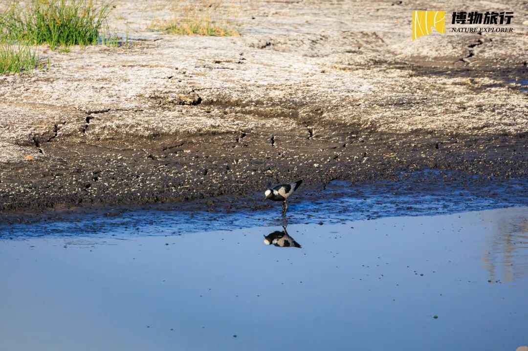 ▲黑背麦鸡正在埃托沙盐沼的小水洼喝水