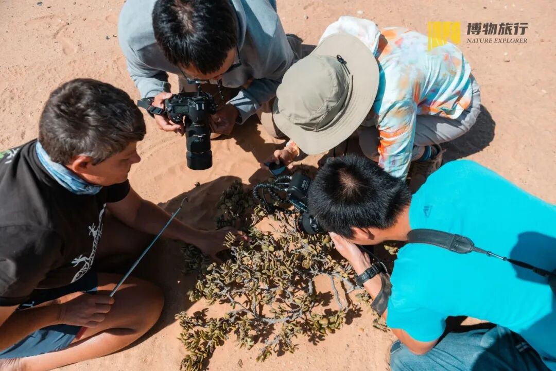 博物邀请了纳米比亚沙丘生态讲师,带领大家寻找平静沙丘底下的神奇动物们!右下,我们不是在拍植物,而是在找躲在植物底下的响尾蛇。
