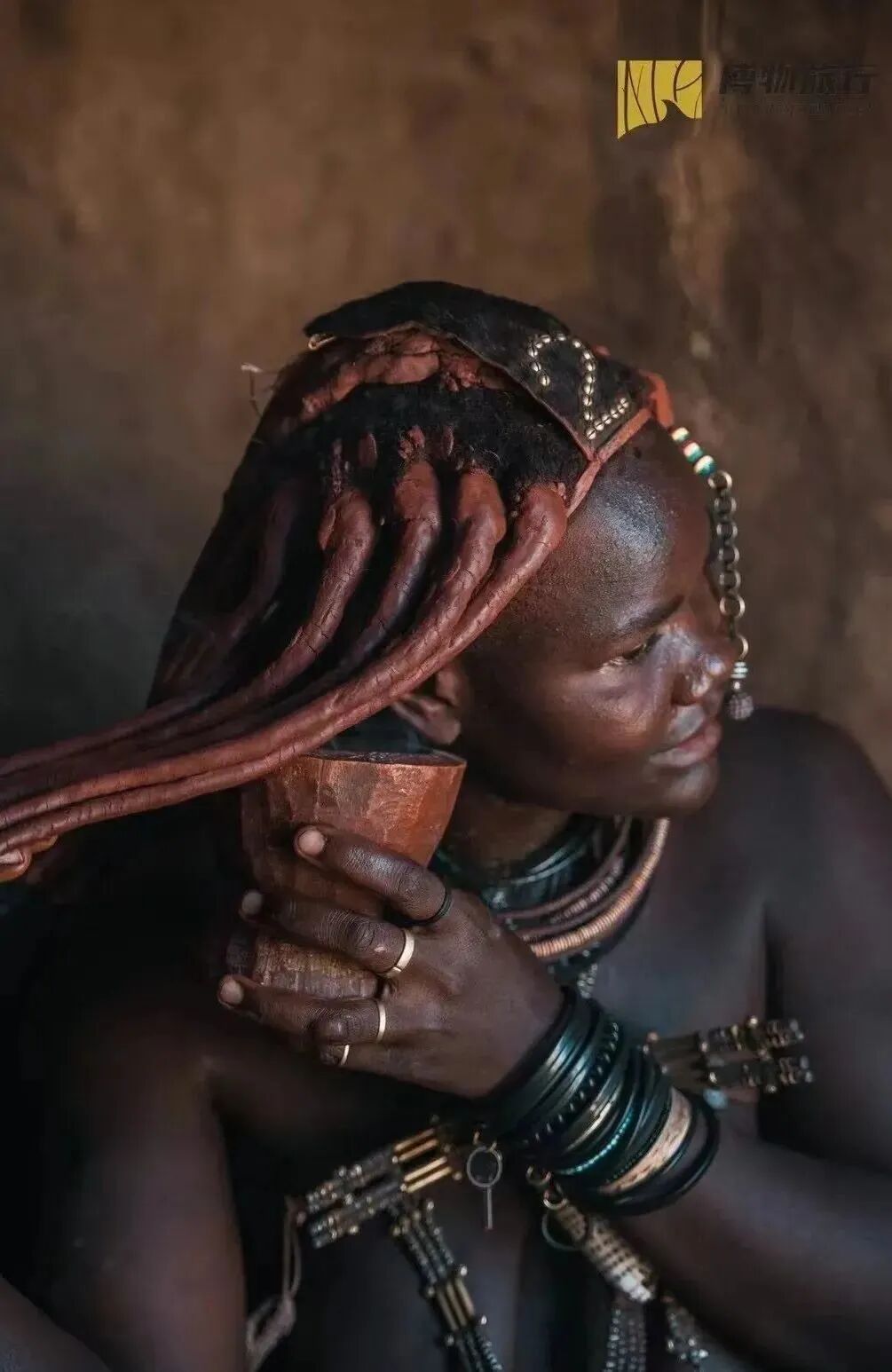 辛巴族是纳米比亚一个行将消失的原始族群,这个部落的女子常年袒露上身,把红泥涂于身上,就连头发也要全部用泥裹上。
