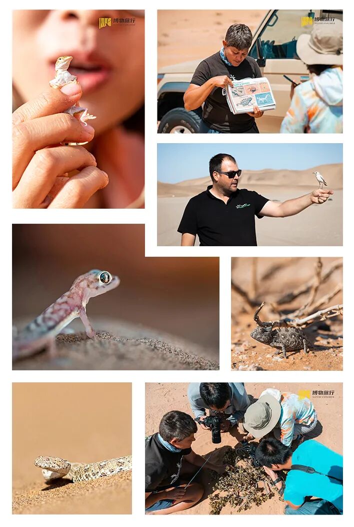 这是属于沙漠的一天,我们将驱车驶进此起彼伏的沙丘,找寻这里的神奇生物。变色龙、阔趾虎、响尾蛇、特拉岩䳭,还有各种各样的昆虫,都在我们的“涉猎”范围。