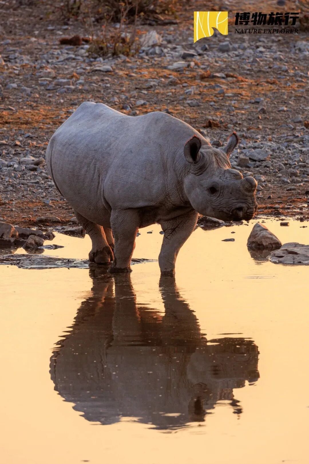 第二种就是“守株待兔”式守在营地水塘旁,日出日落的时候端杯好喝的坐在水塘边拿起望远镜静静等待,不一会儿动物们就会相继来喝水。