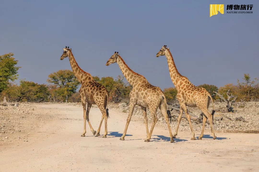 海岸线的游览告一段落,往内陆走,本格拉寒流的影响就变小了,雨水好不容易带来的湿气也得以留存,草木又稀稀落落地生长起来。在埃托沙国家公园就可以见到不少大型动物。