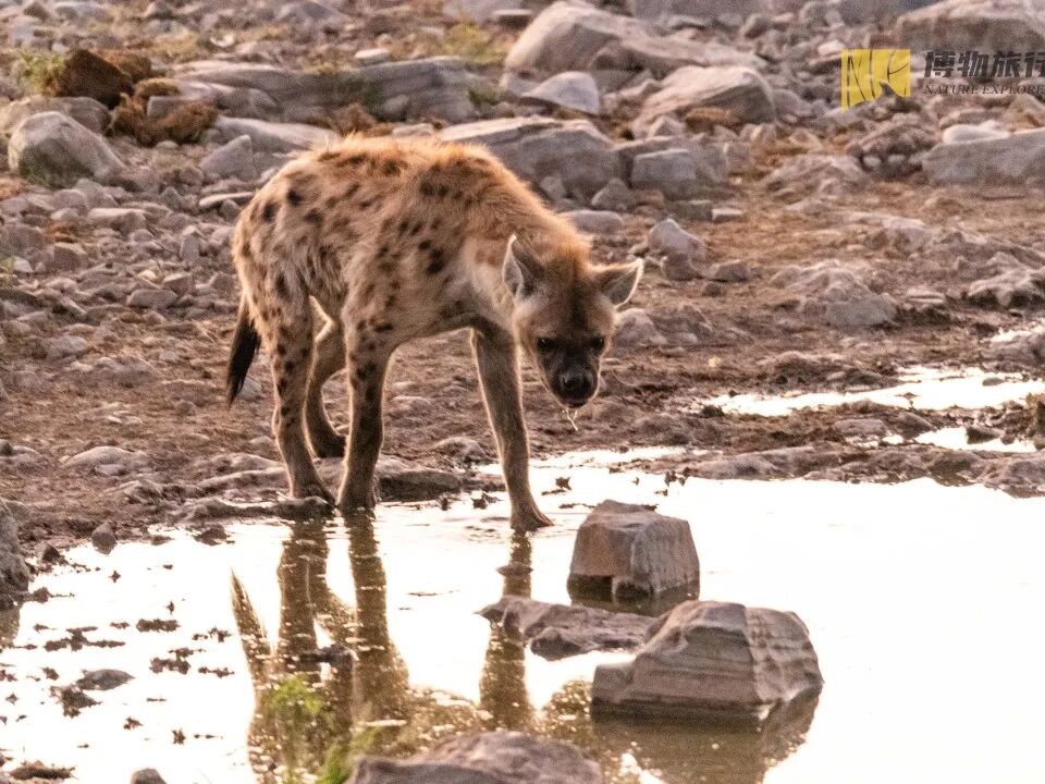 日出日落的时候端杯好喝的坐在水塘边拿起望远镜静静等待,不一会儿动物们就会相继来喝水。