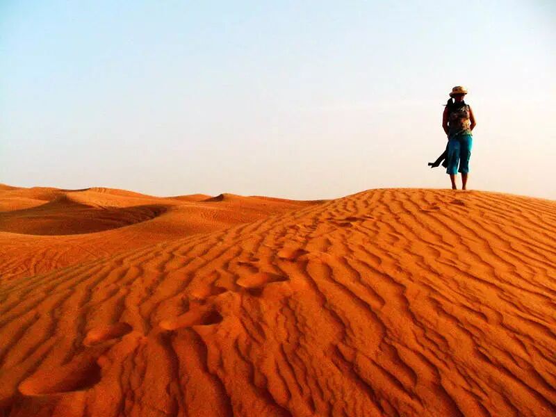 这是世上最古老的沙漠,充满神奇的魅力。这里的沙漠,虽没有撒哈拉的浩瀚,但有世界上最变幻多彩的沙丘。红色沙丘,红色巨浪,一望无际,让人震撼。举世闻名的45号大沙丘,世上最高的沙丘,当地人称“大老爹”。夕阳下,它瑰丽般的色彩,让人目眩神迷。