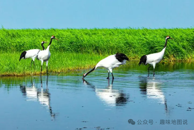 扎龙湿地,位于齐齐哈尔市境内,是中国最大的丹顶鹤自然保护区。