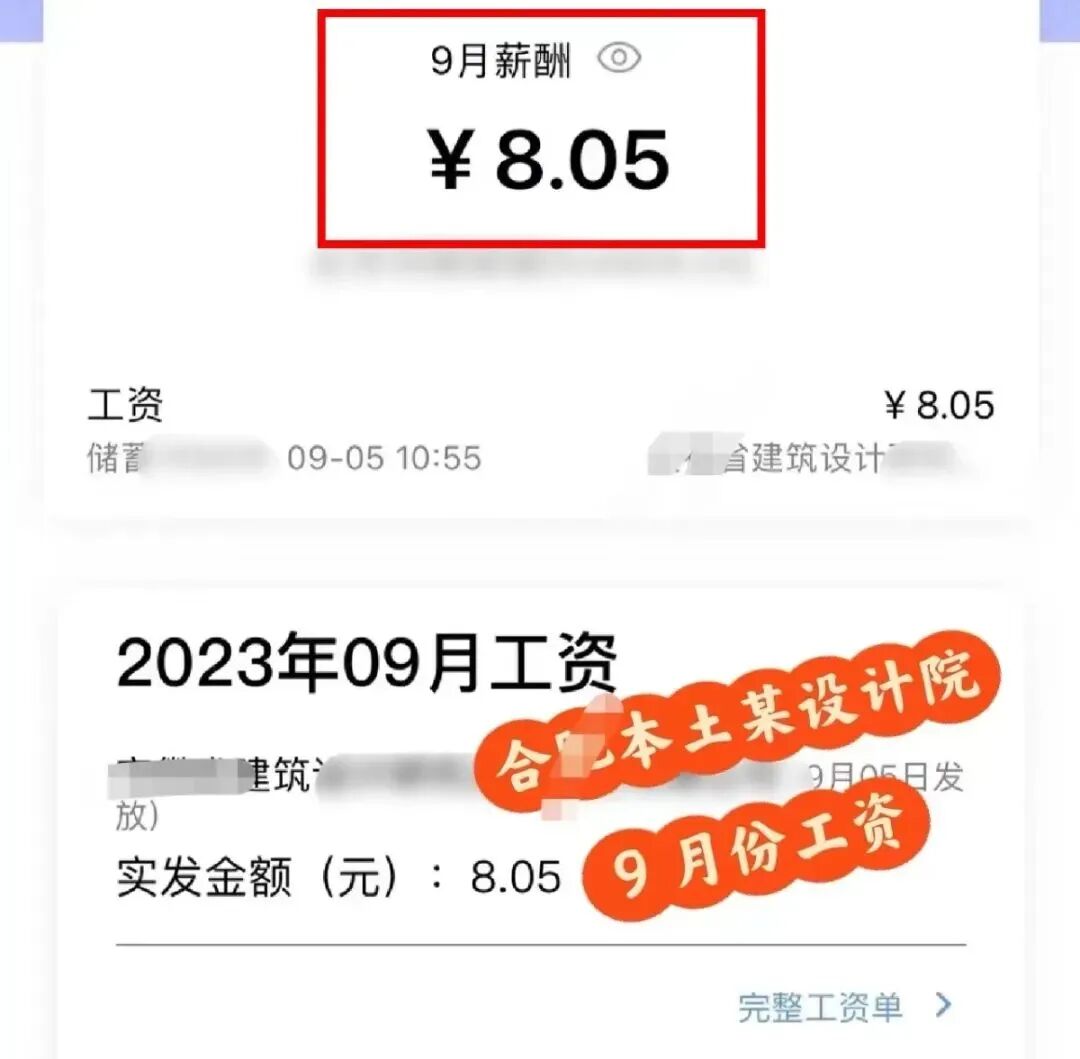 比如,某位网友分享的工资条:2023年9月到手工资8.05元。