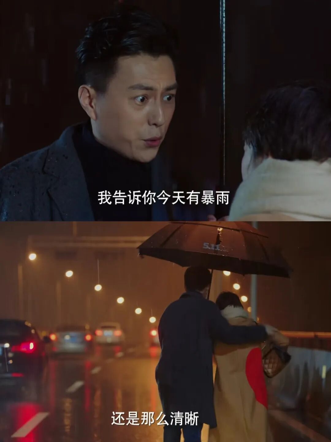 凑巧的是,在这部剧里也有一段淋雨戏,不同的是,这次是跟深爱男人宝总决裂后的黯然离场。