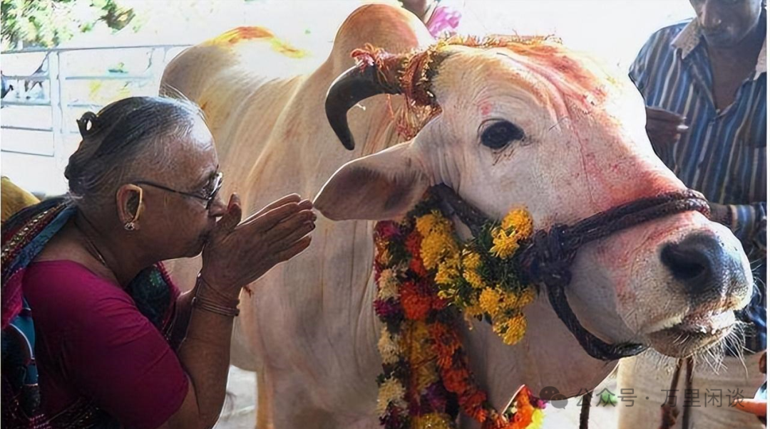 在印度教里,牛代表着丰饶、生生不息的母性力量。另外,主神湿婆交通工具就是骑在牛背上的。可以说牛被印度教文化赋予了极高的地位。对印度教信徒来说,伤害或杀死牛等同于亵渎神明。