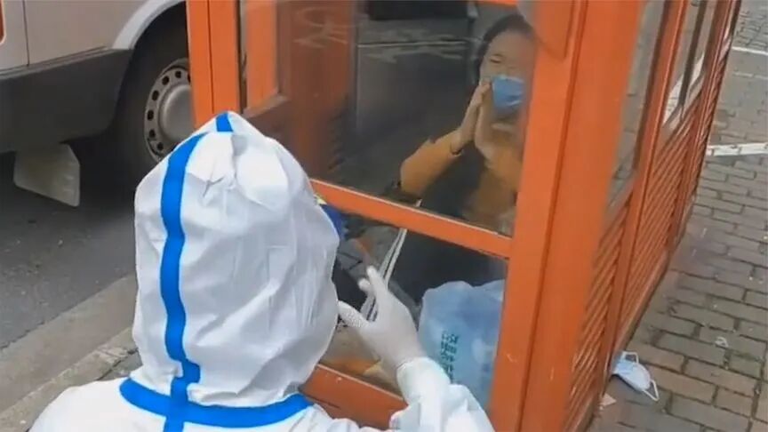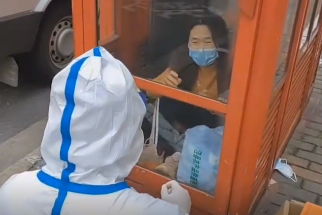 住在这个街头电话亭里,因为电话亭空间很小、且会漏雨、又没吃的,上厕所也非常不方便,这位保姆阿姨已经连续多日少吃少喝,苦苦支撑了几天。