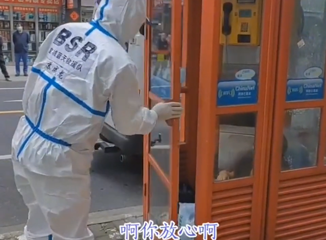 后来宣城的救援队专程联系到了这位保姆阿姨,找到了这个电话亭,一看到来自老家的人,保姆阿姨控制不住内心的激动,一肚子的委屈喷涌而出,眼泪哗哗地流下来。