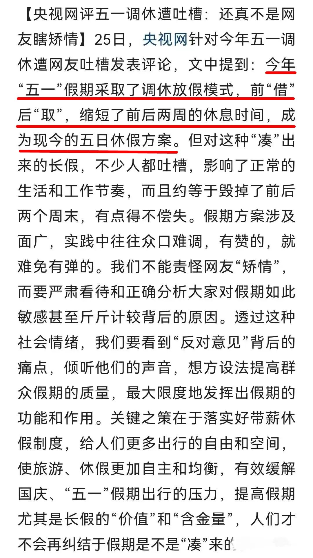 五一放假方案遭央视怒批:“调休”和“挪假”谁发明的?不能怪老百姓矫情!