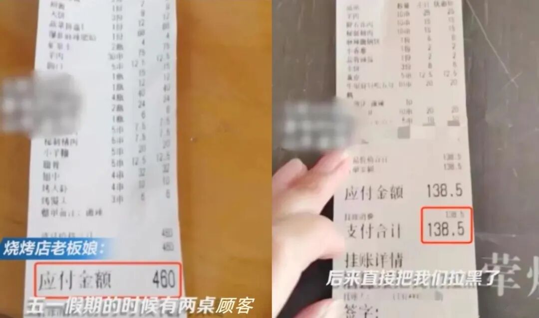在5.1期间,山东淄博,某个烧烤店老板发现有2桌客人没有付款就离开,打客人电话还发现被拉黑,引起关注。