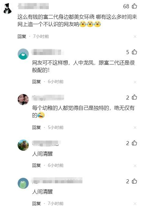 这么有钱的富二代身边都漂亮姑娘多多,哪有时间在网上和你一个素未谋面的网友谈恋爱呢?醒醒吧!