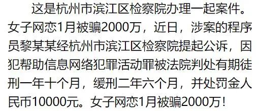 今天让人震憾的事恐怕是这个了:有个女子谈网恋,被骗走了2000万元钱!有2000万元已经是妥妥的富婆了啊,怎么会被人骗走这么多钱呢?