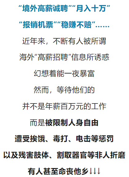 类似的新闻真是屡见不鲜,推荐大家可以看看相关防骗文章:遭毒打、电击……境外“高薪务工”骗局揭露→