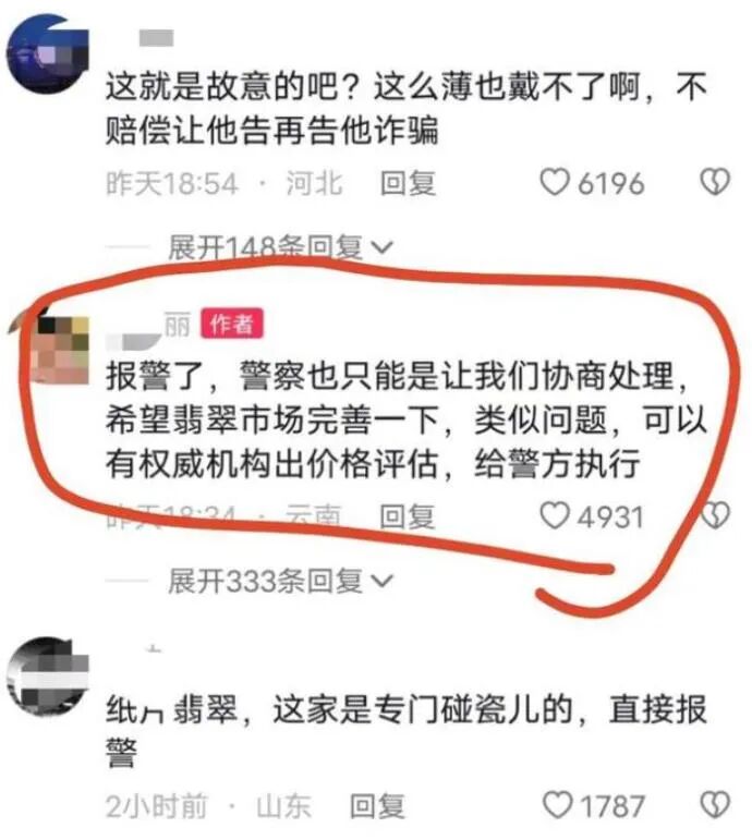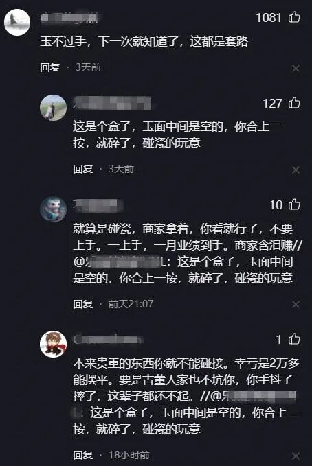 还有网友安慰女子:幸亏这不是古董级别的翡翠,2万多才搞定也算好了,如果是遇到古董,手一抖可能就是一辈子都还不起!