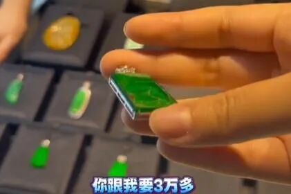 就这样的一个“纸片翡翠”项坠,店家让女子必须要赔三万多,才能走。
