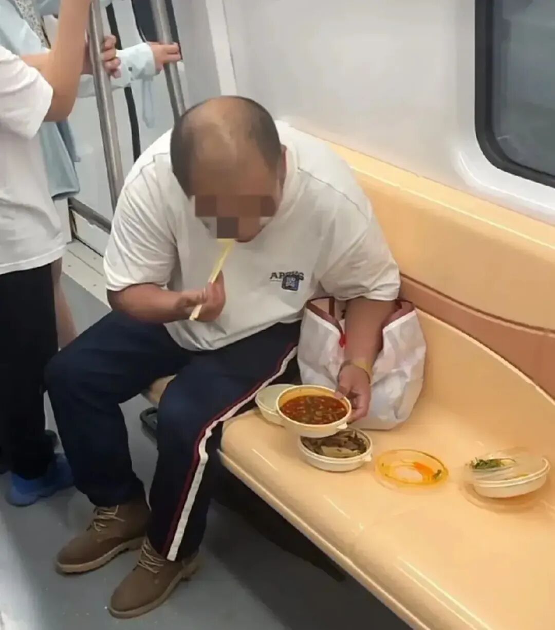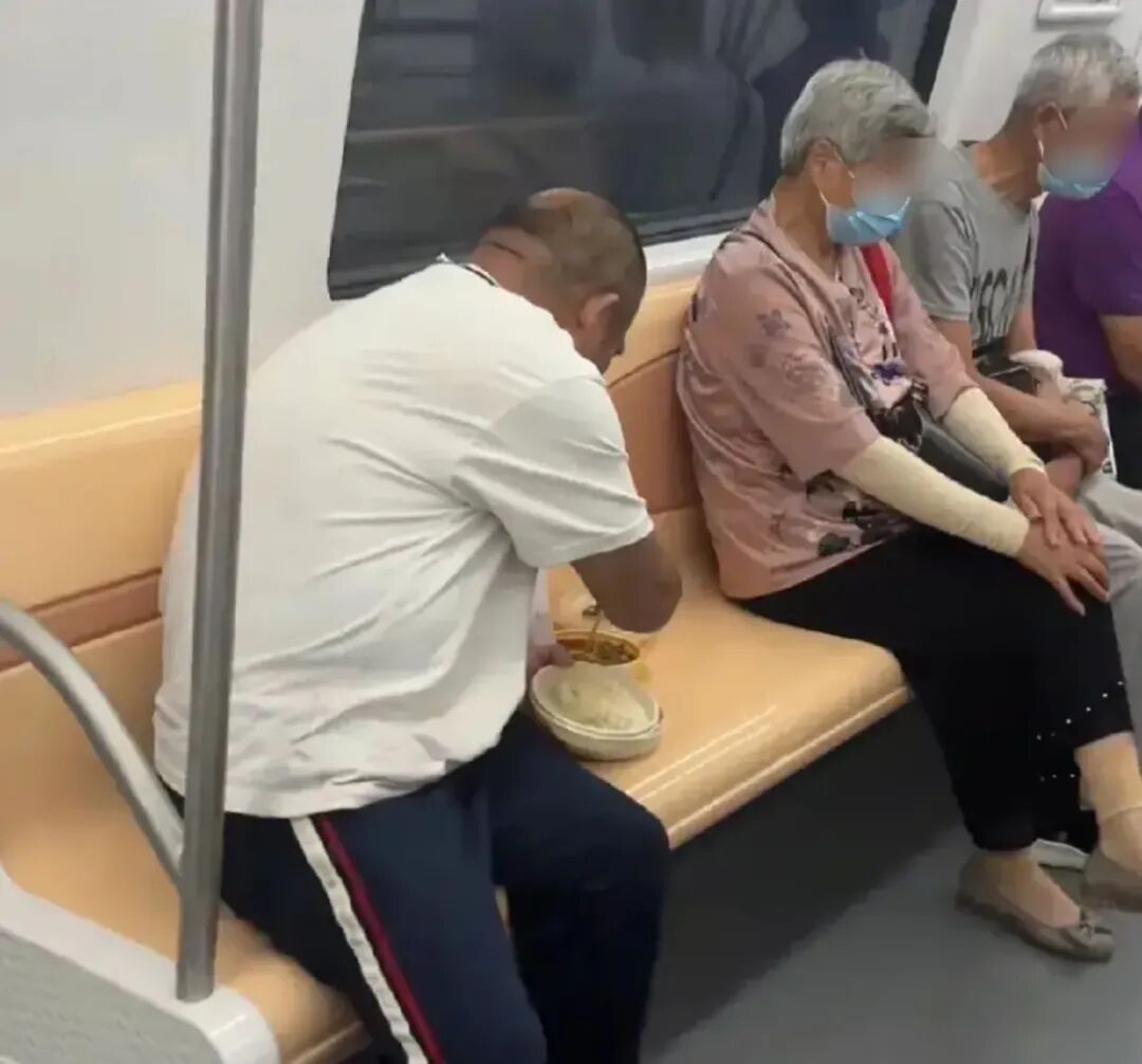 有网友说:大爷这是把地铁当成自家餐厅了啊?