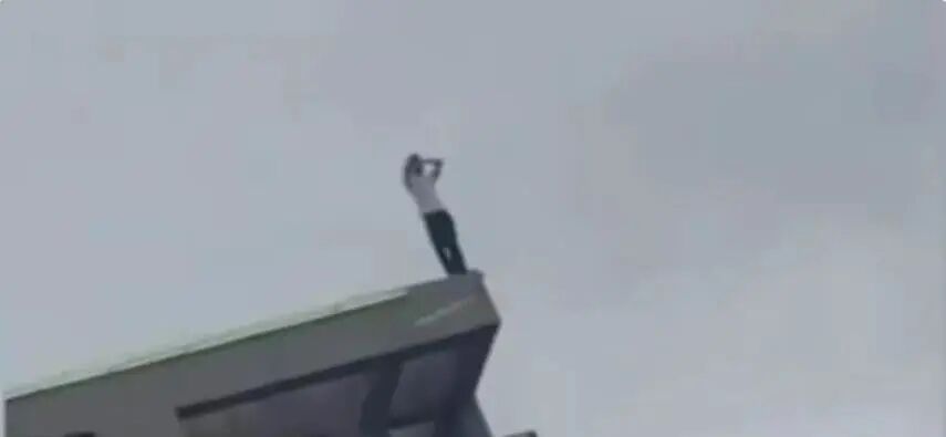 据附近一位旁观女士表示,看到这个小伙子在楼顶上不时地抹眼泪,抓着头发,伤心徘徊,想必当时小伙子的内心是非常难过纠结的。