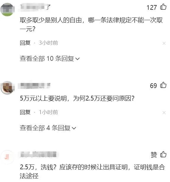 近日,一男子去银行取款过程中,欲提取自己存在该银行的2.5万元现金,但柜员为他办理业务时就询问起了他取钱的用途,并表示询问用途是银行的规定。