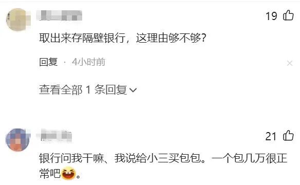 也有网友说:别人问你随便答就行了,银行柜员询问也是例行公事,储户随便给个买车买房之类的回答一般就可以了,真不理解男子为什么非得选择对抗。